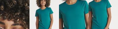 Rib crew neck with self-fabric back neck tape. Fine knit gauge for enhanced printability. WRAP certified.