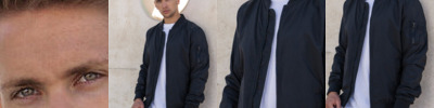 Neutral size label without branding, neck print possible, rip cuff at the hem, side pockets above hem, bomber jacket-style.