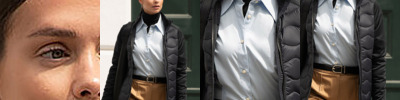 Oversized puffer jacket. Set-in sleeve. 1x1 rib at sleeve cuff. Elastic bottom hem. Lined hood with adjustable plastic stoppers and elastic cords on inside. Nylon zip at centre front with chin guard. Zipped welt pockets with extra grosgrain tape. Self-fabric half-moon at back neck. Inside zipped chest pocket. Grosgrain straps on inside for versatile and hands-free carrying. Inside zip opening at bottom hem and wearer’s left chest for easy decoration.