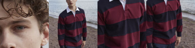 Sewn Stripe Rugby in heavy jersey. Traditional rugby collar with cotton webbing. Taped shoulders and side vents. Rubber buttons. Elastane re-inforced cuffs for shape retention. Twin-needle seams and hems. Rugby leisurewear garments are for leisure use only.