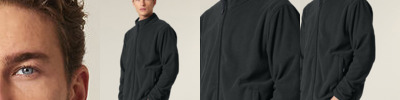 Set-in sleeves. Elastic binding at cuffs and hem. Inside back neck binding loop and back neck tape. Nylon coil zip with metal zip pull and cord ending. Brushed polar fleece fabric with anti-pilling finish on the inside and outside. Front side welt pockets with hidden zip closure. Contrast softshell fabric at the yoke and outer collar. Inside invisible zip at the wearer’s left chest for easy decoration.
