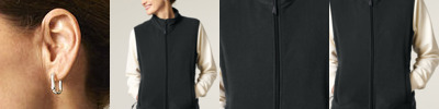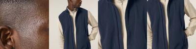 Sleeveless. Elastic recycled binding at cuffs and hem. Inside back neck binding loop and back neck tape. Plastic Vislon zip with metal zip pull and cord ends. Fully bonded inside polar fleece layer with anti-pilling finish. Front side contrast softshell welt pockets with hidden zip closure. Contrast softshell fabric at pocket, back yoke and outer collar band. Inside invisible zip at the wearer’s left chest for easy decoration.