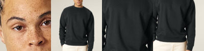 Raglan sleeves. 1x1 ribs at collar, sleeves cuffs and bottom hem. 1x1 ribs v-notch at collar. 1x1 ribs side panels. Two-needle topstitches at the collar, sleeve cuffs and bottom hem. Three-needle flatlock stitches at the raglan seam, side panel seams and v-notch. Inside back neck tape in herringbone. Self-fabric half moon at back neck.