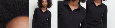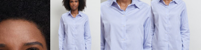 100% combed ringspun cotton. Ribbed collar and cuffs. Concealed, three self colour button placket. Side vents. Twin needle hem. Unbranded size label.