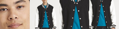 Contrast sleeves. Knitted collar, cuffs and waistband with stripe details. Press-stud closure. Contrast studs. Welt contrast pockets. Taped back neck. Hanging loop at back neck. Pocket with small opening for earphone cord feed. Hidden ear phone loops. Worldwide Responsible Accredited Production (WRAP) certified production.