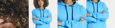 Twin needle stitching detailing, double fabric hood with contrast inner, contrast flat lace drawcords. Kangaroo pouch pocket with small opening for ear phone cord feed, hidden ear phone loops. Ribbed cuff and hem. Worldwide Responsible Apparel Production (WRAP) certified production.