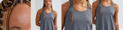 Scoop neck. Elastic racer back with 'laser cut' holes. We recommend using block out vinyl and inks.Product contains no branded neck or waist label. Removable Kimble or looped garment tags. Inner seam label holds important product information on one label with a second label containing brand information which can be cut-away.
