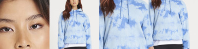 Relaxed fit. Twin-needle stitching detail. Double fabric hood with round drawcords. Kangaroo pouch pocket. Brushed inner fleece. Ribbed cuffs and hem. Tie-dye design. Every piece is unique. Size pip.