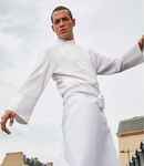 57% polyester/39% cotton/4% elastane. Tailored fit. Classic banded 'Grandad' collar. Back yoke. Two button cuffs with button on cuff gauntlet. Curved hem.
