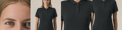 100% Organic cotton piqué, pre-shrunk. The Stella Coaster mid-light polo for women. Fitted. Set-in sleeve. Flat knit rib on collar and sleeve hem. Inside heavy single Jersey back neck tape. Front inserted placket with two buttons in matching body colour. Slit and bartack finish at side seam hem. Single-needle topstitch at shoulder seams. Bottom hem with narrow double-needle topstitch.