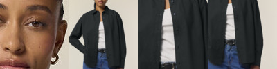 The Stella Styler poplin shirt for women. Relaxed fit. Point collar with single-needle topstitches. Collar stand. Grown-on-placket with single-needle topstitches on each side. Forwarded shoulder. Back yoke with box pleat. Inside yoke in self-fabric. Dropped shoulders. Sleeve placket with one button. Sleeve cuff with two buttons. Rounded cuff corners. Double pleats at cuff seam.