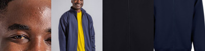 Standard fit. YKK full-zip. YKK pocket zips. Twin-needle stitching details. Ribbed cuff and hem. Side seams. Brushed inner fleece.