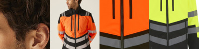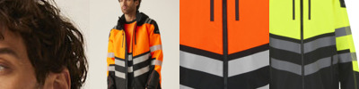 96% Polyester, 4% spandex 3L softshell with warm grid fleece backing and water-repellent finish. Certified EN ISO 20471:2013 +A1:2016 Class 2. Detachable hood with adjusters. Heat-applied reflective tape, with segmented tape on strategic panels for additional comfort. Six pockets. One radio loop. Inner stormguard. ID reflection – angled chevrons identify which way you are facing. Made with recycled content.