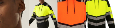 100% brushed back polyester fabric soft touch – 310gsm. Certified EN ISO 20471:2013 +A1:2016 Class 2. Heat-applied reflective tape, with segmented tape on strategic panels for additional comfort. Grown-on hood with adjusters. Kangaroo pocket to front. Ribbed collar and cuffs. ID reflection – angled chevrons identify which way you are facing. Made with recycled content.