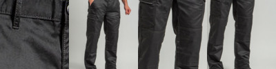 Traditional waistband with belt loops and regular front swing pockets. Conceal zip fly. Two cargo pockets on both legs. One back open pocket. Knee pad pockets with tear and release fastening.