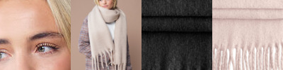 Contains 100% certified recycled polyester. Luxury soft-touch fabric. Chunky, wrap-around design. Oversized style. Tassel trim. TearAway adhesive fabric label.