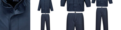 100% Polyester tricot. 95% PVC, 5% PU coated. Extremely water-resistant, PFAS-free Texpel™ Splash Eco fabric finish – water beads away from fabric surface. Waterproof with welded seams to prevent water penetration. Stud-adjustable cuffs for a secure fit. Storm flap front to protect against the elements. Stud-adjustable hems for a secure fit. Fully elasticated waistband for ultimate wearer comfort. Drawcord hood and hem for a secure and comfortable fit. Two pockets for secure storage. Retail bag aids presentation for retail sales. Jacket-and-trouser set for convenience. CE certified. UKCA marked. EN 343 Class 4:1 X WP 5,000mm.