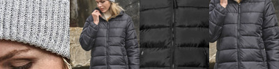 Main fabric: 100% Recycled polyester 360T. Padding: DuPont™ Sorona – 37% Bio plant-based polymer, 63% Polyester. Lining: 100% Recycled polyamide 380T.. Fixed hood. Two practical front pockets. Inner pocket. Adjustable hem with drawstring/stopper. SBS zips. Prepared for embroidery. Certified recycled polyester.