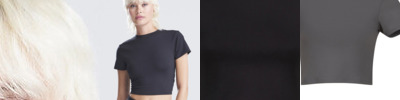 Cropped length. Fitted silhouette. Four-way stretch fabric. Wicking, quick-dry fabric. Twin-needle stitching details. Made with recycled polyester. Tear-away label.