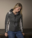Stormtech Thermolex™ high-loft synthetic down. Durable water-repellent finish. High-performance windproof outer shell. Bonded stretch softshell panels and sleeves. Adjustable hem with drawcord. Zipped handwarmer pockets. Internal full-length storm flap with brushed tricot. Articulated elbows. Decoration access. Contains recycled polyester.