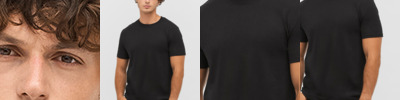 Jersey knit.Modern fit.Ribbed collar.Taped neck.Tubular body.Twin needle stitching.Tear out label.