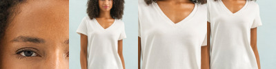 Organic or in-conversion to organic cotton.Jersey knit.Fitted style.Wide collar.Taped neck.Side seams.Cropped length.Twin needle sleeves and hem.Tear out label.