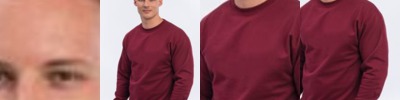 Set-in sleeve. 1x1 rib at neck collar. Inside back neck tape in self fabric. Tubular construction. Sleeve hem and bottom hem with wide double topstitch.
