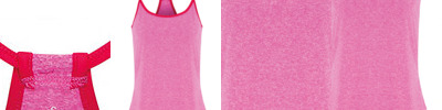 Wicking fabric. Scoop neck. Flattering cut for the female figure. Contrast spaghetti straps, racer back. We recommend using block out vinyl and inks.Product contains no branded neck or waist label. Removable Kimble or looped garment tags. Inner seam label holds important product information on one label with a second label containing brand information which can be cut-away.