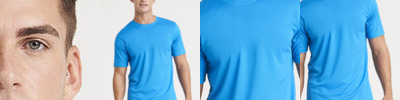 Wicking fabric. Stretch. Crew neck. Short sleeve. Lightweight. Twin-needle stitching on hem and arms. Recycled polyester. We recommend using block out vinyl and inks.Product contains no branded neck or waist label. Removable Kimble or looped garment tags. Inner seam label holds important product information on one label with a second label containing brand information which can be cut-away. UPF 40+.