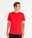 Wicking fabric. Stretch. Crew neck. Short sleeve. Lightweight. Twin-needle stitching on hem and arms. Recycled polyester. We recommend using block out vinyl and inks.Product contains no branded neck or waist label. Removable Kimble or looped garment tags. Inner seam label holds important product information on one label with a second label containing brand information which can be cut-away. UPF 40+.
