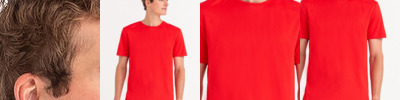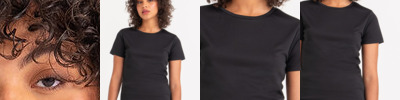 Rib crew neck with self-fabric back neck tape. Fine knit gauge for enhanced printability.