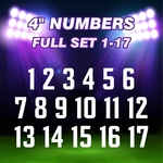 SN006 Copy of Sports Numbers - 4 inch - WITH OUTLINE numbers 1-17