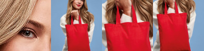 Handy cotton shopper. Handles 30 x 2.5cm. Perfect print surface. Cross-stitches at handle. Inside hemmed sewing.