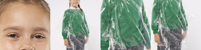 Kids emergency hooded plastic poncho. Lightweight and reusable .