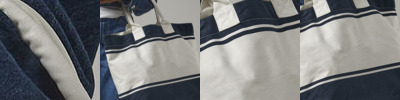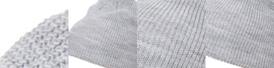 2.3cm knit collar. Shoulder to shoulder taping. Fine gauge knit. Front coverseaming on collar. Tubular construction for shape retention.