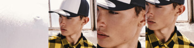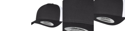 Classic trucker cap. White front. Matching brim. Mesh back in contrasting colour. Lower profile. Structured canvas front. Center seam in snapback style.