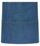70% polyester/30% cotton. Easy care fabric. Three front pockets. Self fabric 95cm ties. Width 70cm. Length 36cm. Contrast stitching on blue denim and indigo denim. Wash 60°C. Tear out label.