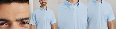 Men's signature Oxford short sleeve Easycare shirt with wrinkle free finish for a smart and professional appearance. Button down collar. Left breast open mitred pocket. Short sleeves. Side back pleats. Cotton rich Oxford fabric. Semi fitted styling. Easy