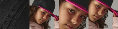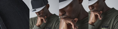 Flat peak. Contrast detailing. Authentic peak sticker. Retro style snapback size adjuster.