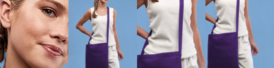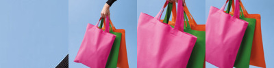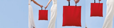 Two-tone cotton shopper. Short handles, 35 x 2.5cm. Inside hemmed sewing. Cross-stitches at handle. Perfect print surface.