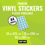 Size of Sticker depends on how many stickers per sheet are supplied.