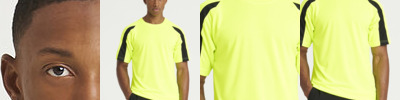 Contrast inserts on front and back sleeves. Crew neck. Raglan sleeve design. Just Cool’s own Neoteric ™textured fabric with inherent wickability. Self fabric taped back neck. Self fabric collar. Printed back neck. Worldwide Responsible Accredited Production (WRAP) certified.