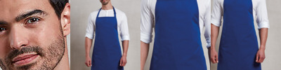 Bib apron with enhanced hygienic properties. Height adjustment buckle on neckband. Self-fabric ties.