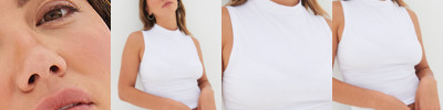 Tear-out label. Self-fabric funnel-neck. Fashionable cropped length. Twin-needle stitching at armhole and hem. Soft-stretch single Jersey fabric.