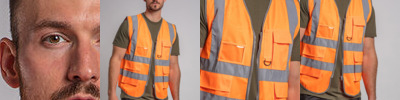 Certified EN ISO 20471:2013+A1:2016. RIS-3279-TOM ISSUE 1:2016 (Orange only). HV Orange & HV Yellow - Class 2. Two-Colour - Class 1. Full length front zip fastening. ID Card pocket. Mobile phone pocket. Key loop. Two side front expandable pockets with flaps. Over shoulder and around body reflective tapes.