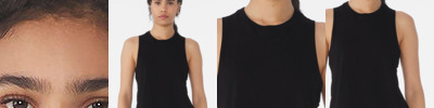 Side seamed. Relaxed, cropped fit. Racerback. Raw edge arm holes.