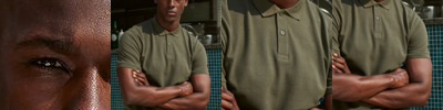 Modern and stylish fit with side vents. 3-button placket with dyed-to-match buttons and spare button. Cuffed short sleeves. Taped neck. Twin-needle stitching on hem.