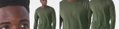 Modern fit long sleeved T. Size tab label. Triblend fabric for style and comfort. Taped neck. Twin-needle stitching on sleeves and bottom hem. Ribbed crew neck style. soft-feel fabric. Side seams. Set-in sleeves.