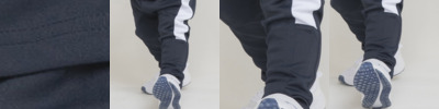Kids' track bottoms with contrast panels down the outer legs. Elasticated waistband. Plain hem.