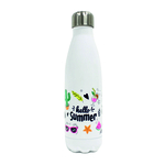 A 400ml aluminium water bottle ready for personalising. Available in white and silver with 2 caps included.